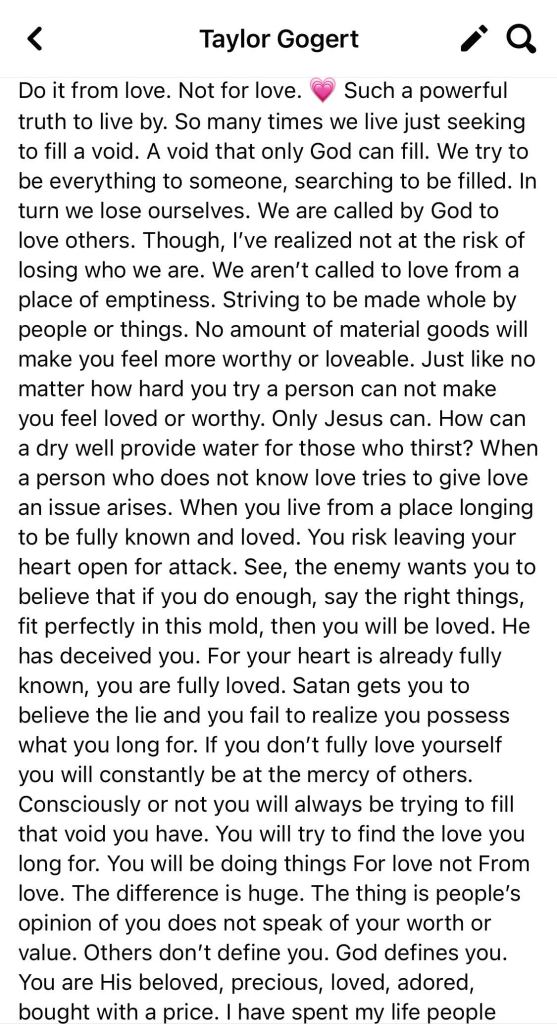 God revealed more of this to me the other day when I made a trip to the store. After a long day of work I half wanted to go to the store and half didn’t, but I really felt like I should just go. I had already come home after my work day, changed my clothes and washed my face. I normally like to be a little more put together when I leave the house and to be honest I felt a little insecure. My skin was breaking out but I decided to go to the store makeup free anyways. Of course when I got there someone approached me, but it’s funny what a blessing it actually was. The entire conversation I knew God was using this woman to speak to me. She was saying such kind and wonderful things to me the entire conversation complimenting me left and right. She told me how beautiful I am and initially I thought “really?! I’m not wearing makeup and does she not see my skin breaking out?!” Yet, in the moment God was using this woman to speak His truth into me and encourage me, as well as use the situation as a reminder that not everything is about appearance. The conversation then quickly turned into talking about God and she walked away saying how I made her whole day. I never saw this lady before and probably never will again, but I know God used her that day to remind me how special and loved I am to Him.